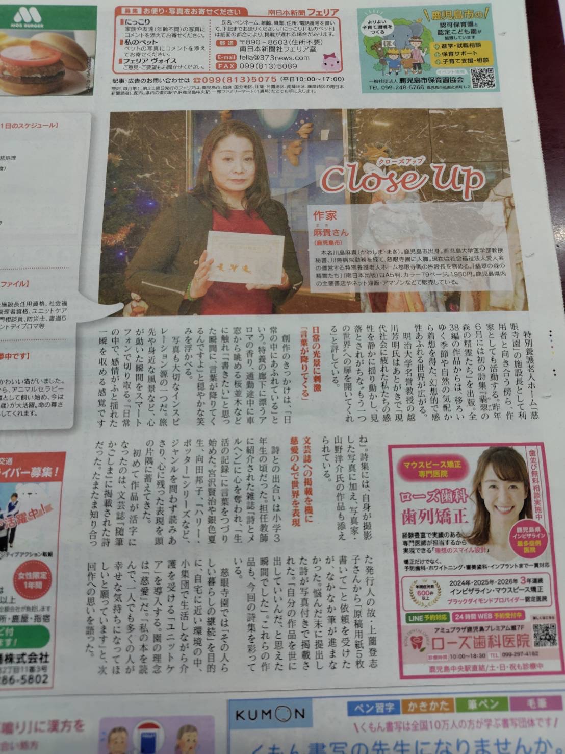 また詩集『翡翠の森の精霊たち』は、11月14日付の南日本新聞に折り込まれている「フェリア」でも紹介されました。ぜひご覧ください。